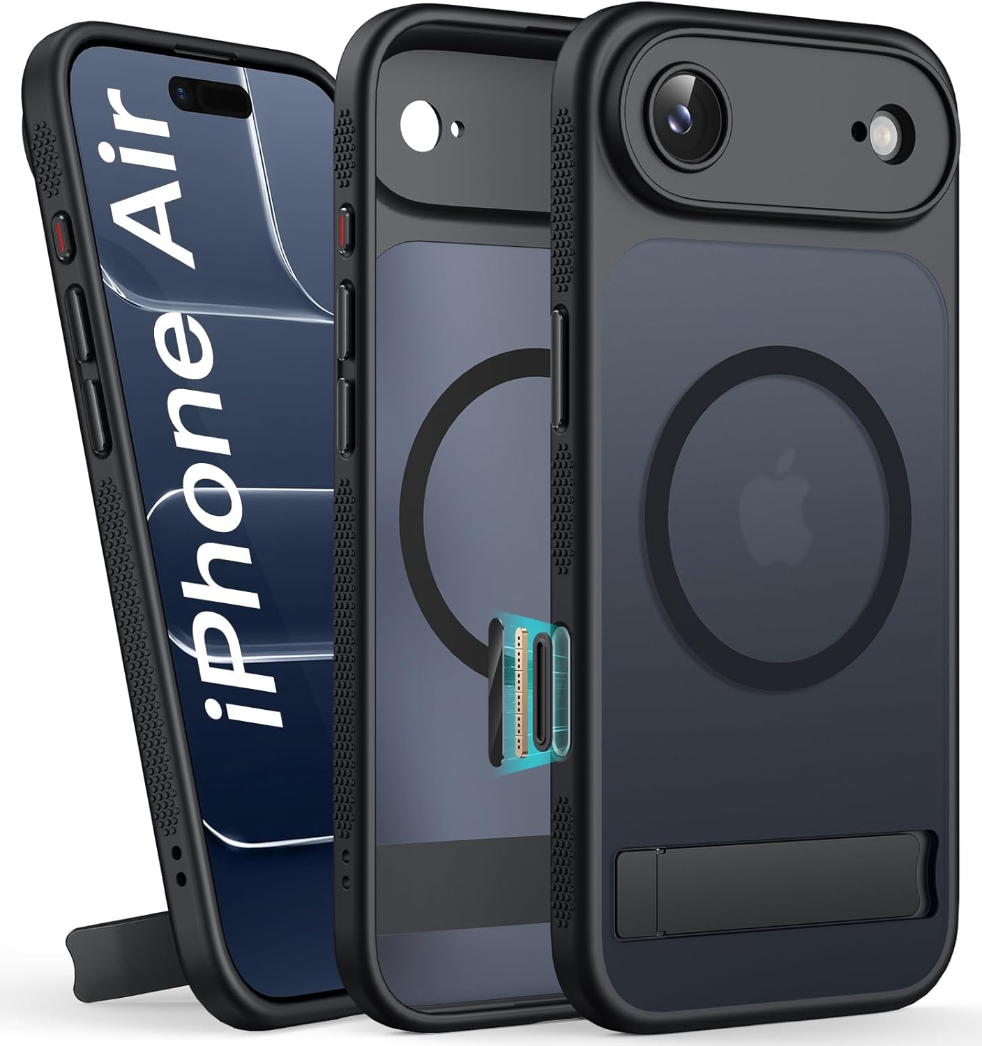 - 【Military Grade Protection with Full Precise Camera Guard】Unlock next-level slim protection in style! Engineered for ultimate durability, this iPhone Air case with stand has been upgraded to one precision-cut individual lens opening for enhanced scratch-proof protection of each lens from touching surfaces, combining a hard back with a TPU bumper, 4 reinforced corner airbags, 1.5mm raised screen and camera edges, and offers total shockproof defense against scratches, drops, bumps