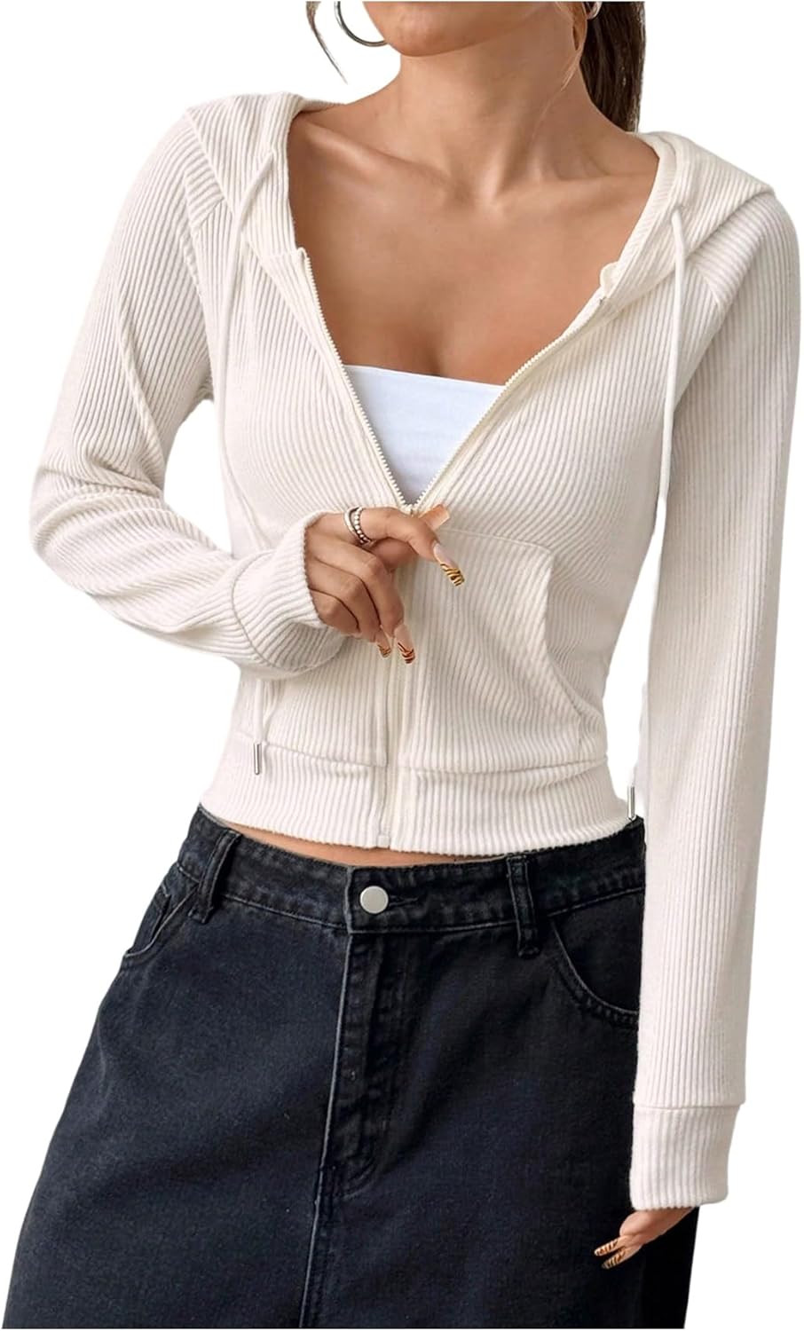 SHENHE Women's Crop Top Hoodie Y2k Zip Up Ribbed Knit Lightweight Workout Hooded Sweatshirt Jacket