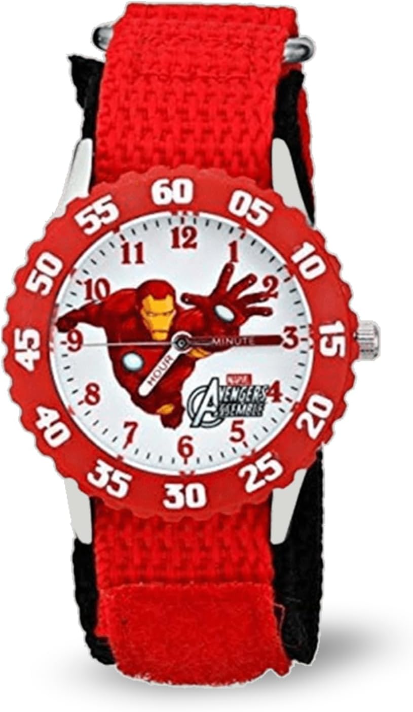Marvel Kids' Bezel Stainless Steel Time Teacher Analog Nylon Strap Watch