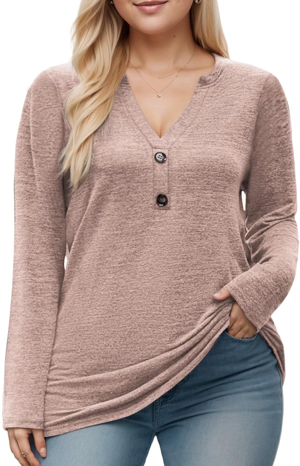 DOLNINE Womens-Plus-Size-Tops Trendy Henley Button Shirts Casual V Neck Long Sleeve Tunic Sweatshirts XL-5XL