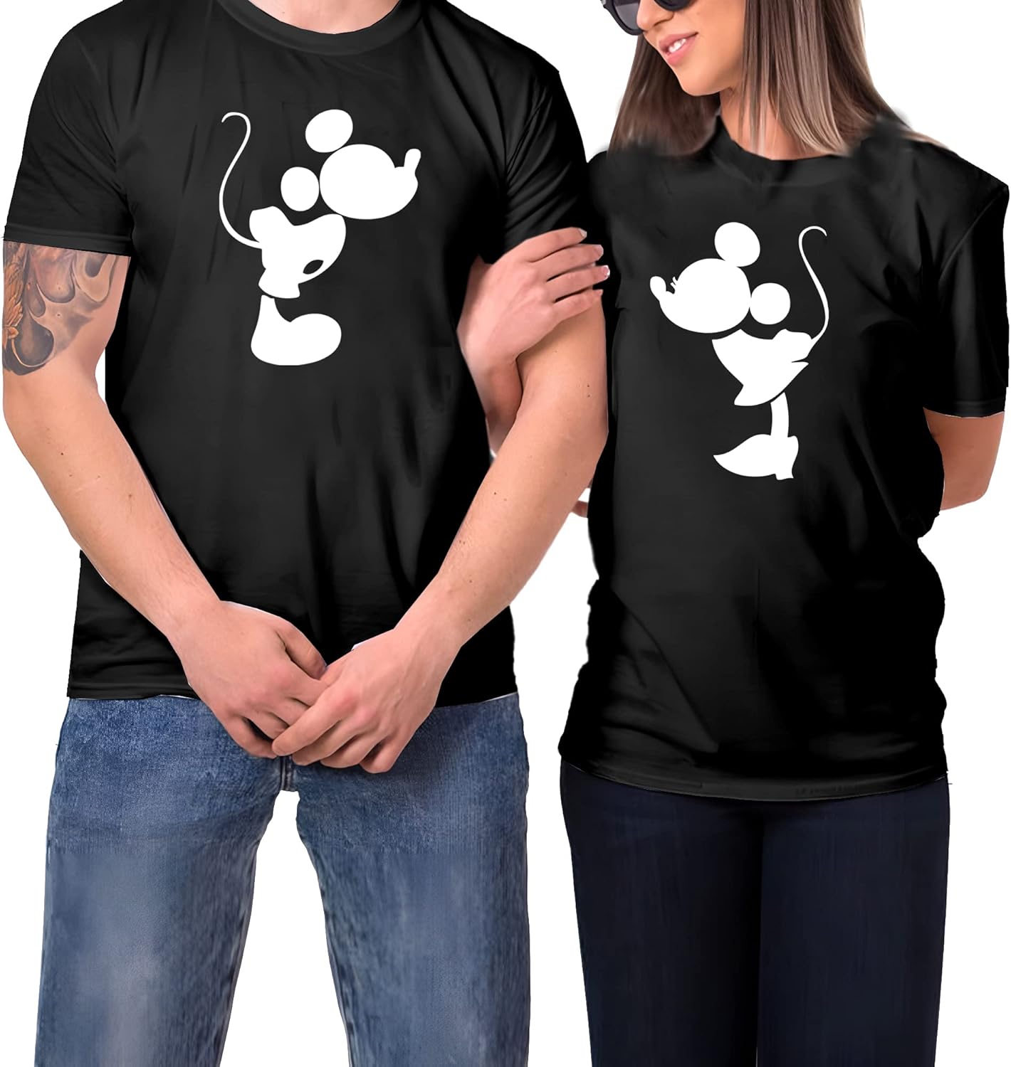 Matching Couple Shirts His and Hers with Kissing MM Design Man Women Husband Wife T-Shirts Outfits Valentine.