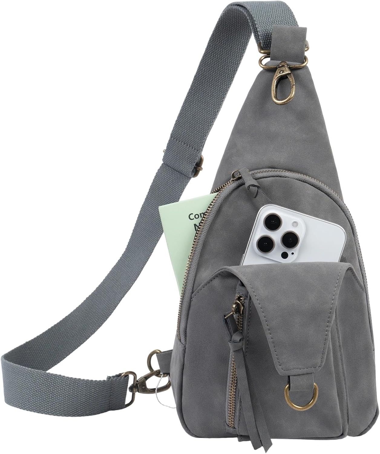 FaroDor Women Small Crossbody Sling Bags PU Leather Suede Chest Bag Lightweight Small Backpack for Casual Traveling Multi-Pocket Packs (Grey)