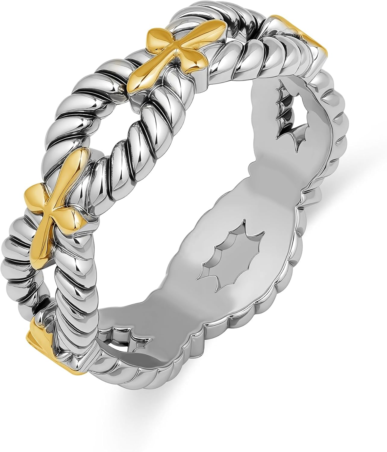 Two Tone Vintage Rings for Women - Gold and Silver Cable Ring Trendy Statement Ring Twisted Cable Wire Band Ring Jewelry Gift