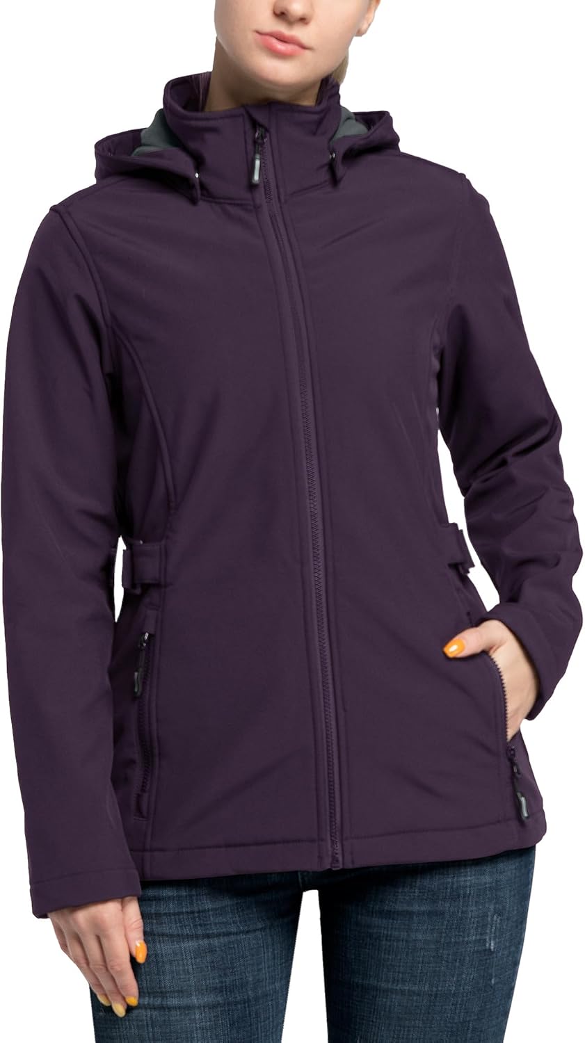 Outdoor Ventures Women's Softshell Jacket with Removable Hood, Insulated Windbreaker Waterproof Warm Fleece Lined Coat
