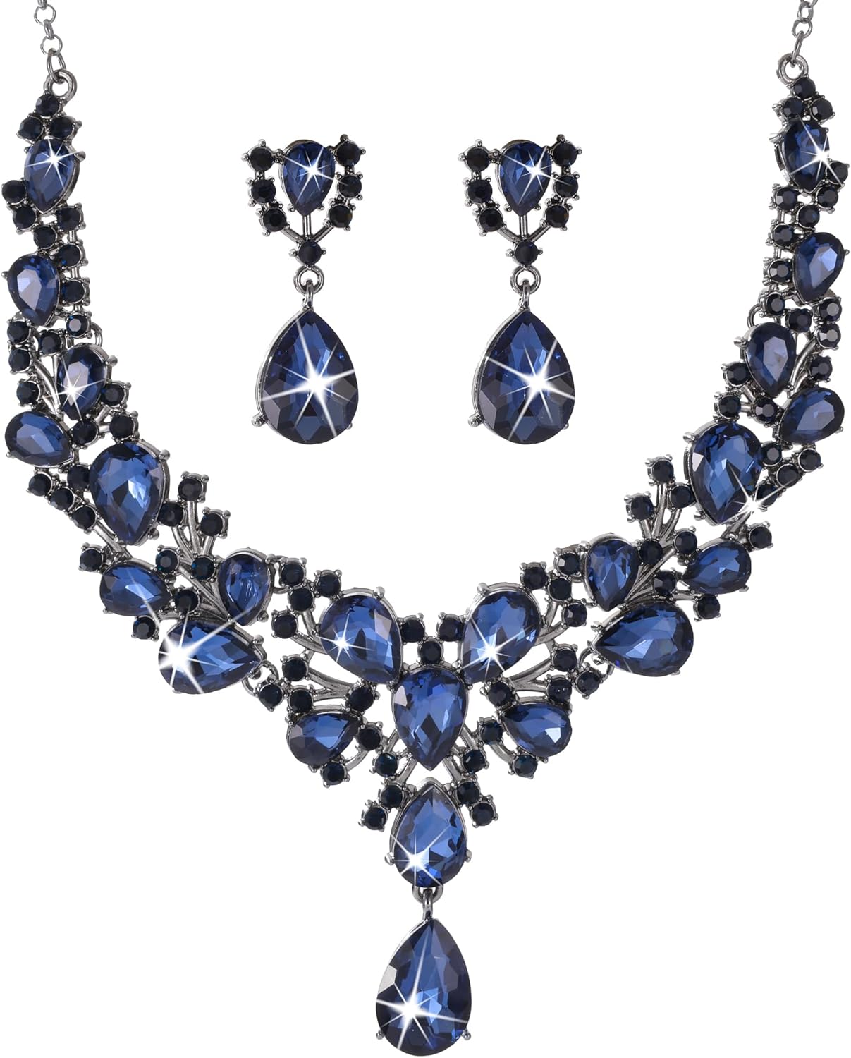 Kamirola Bridal Wedding Jewelry Set for Women/Brides/Bridesmaids Crystal Jewelry Set for Wedding Prom Party Bridal Crystal Necklace Earrings Set(TR92)