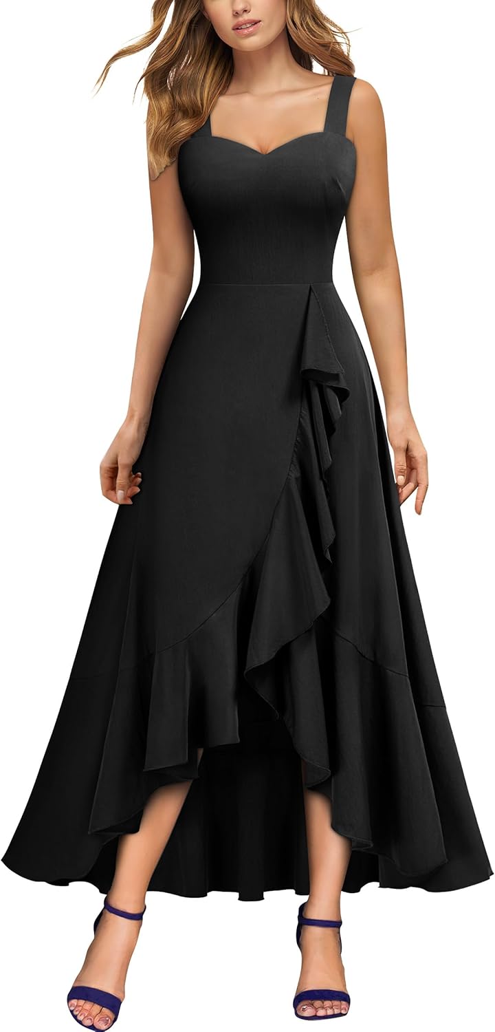 Miusol Women's Casual V-Neck Ruffle Split Flowy Cocktail Party A-Line Dress
