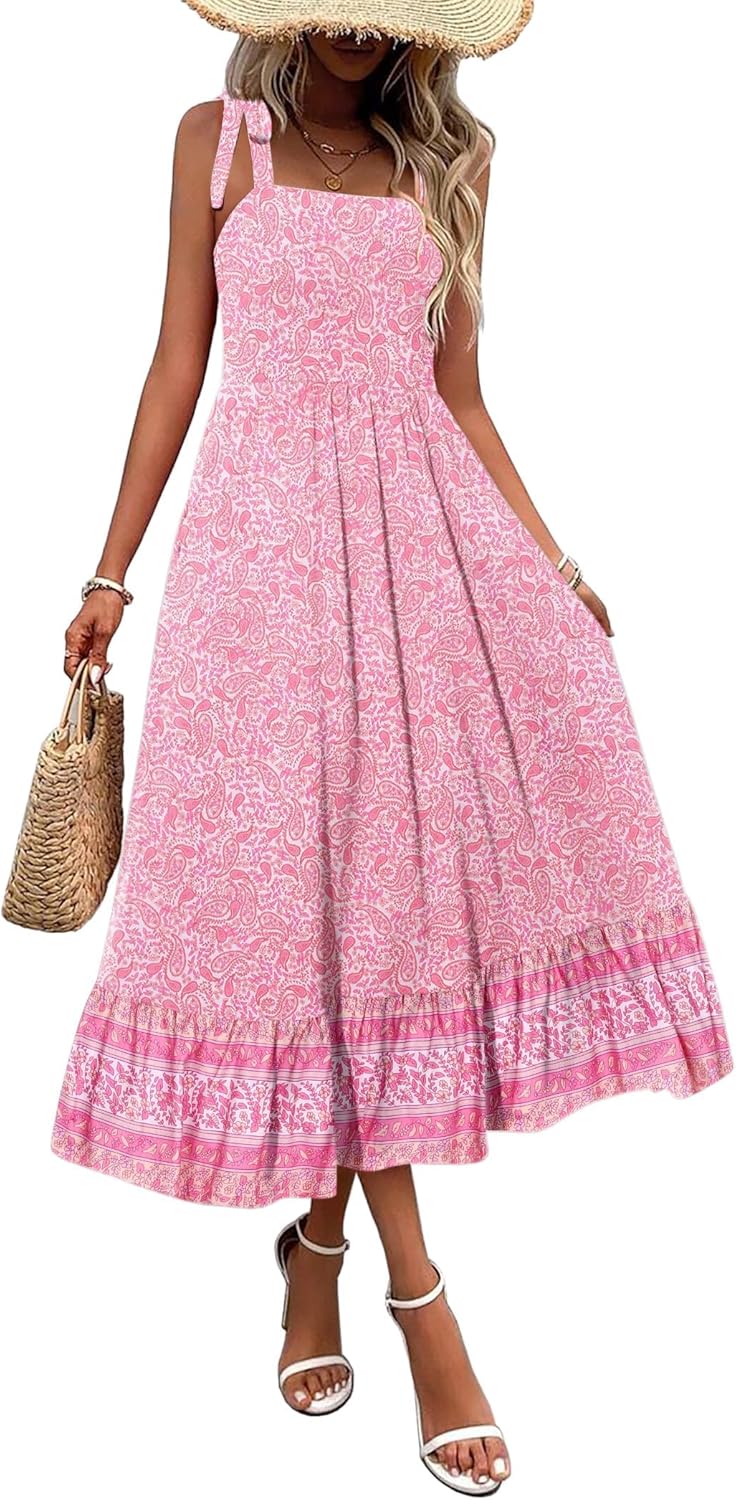 Zeagoo Women Summer Maxi Dress with Pockets 2025 Spaghetti Strap Sundress Casual Flowy Boho Dress Floral Tiered Beach Dress