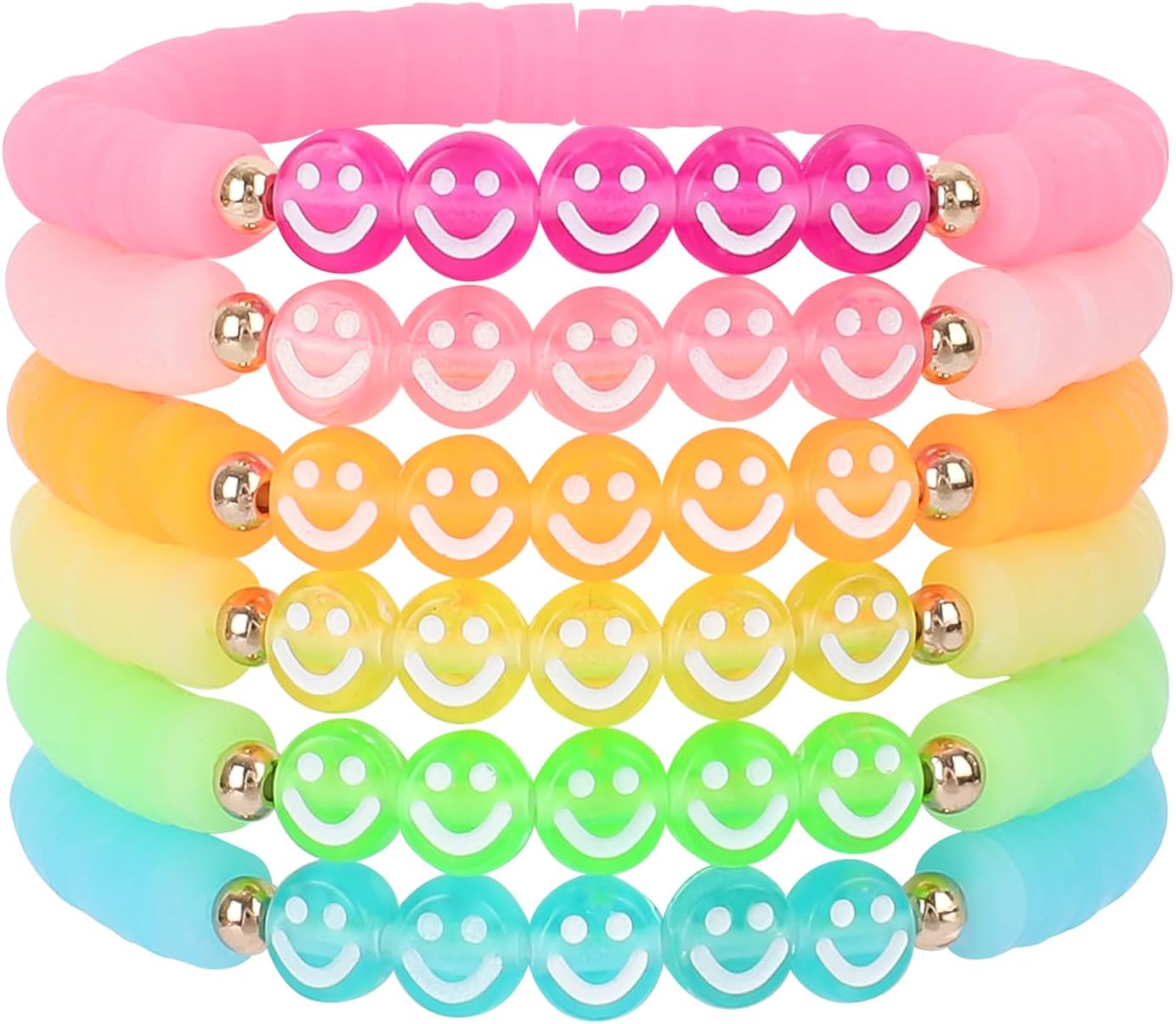 Bohemian Colorful Beaded Bracelets for Women Boho Stackable Natural Stone Letter Clay Glass Beads Stretch Bracelet Set with Charm, Cute Rainbow Friendship Bracelets for Summer Vacation