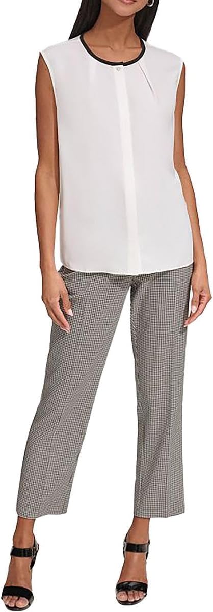 KARL LAGERFELD Paris Womens Textured Pleated Button-Down Top Ivory M