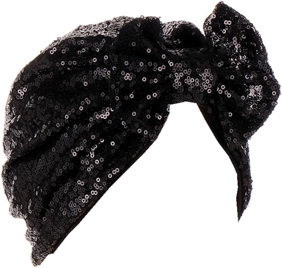 Pre Tied Turban Hats for Women - Knotted Solid Sequin Caps Chemo Beanies Headwrap Headwear for Cancer Daily Use