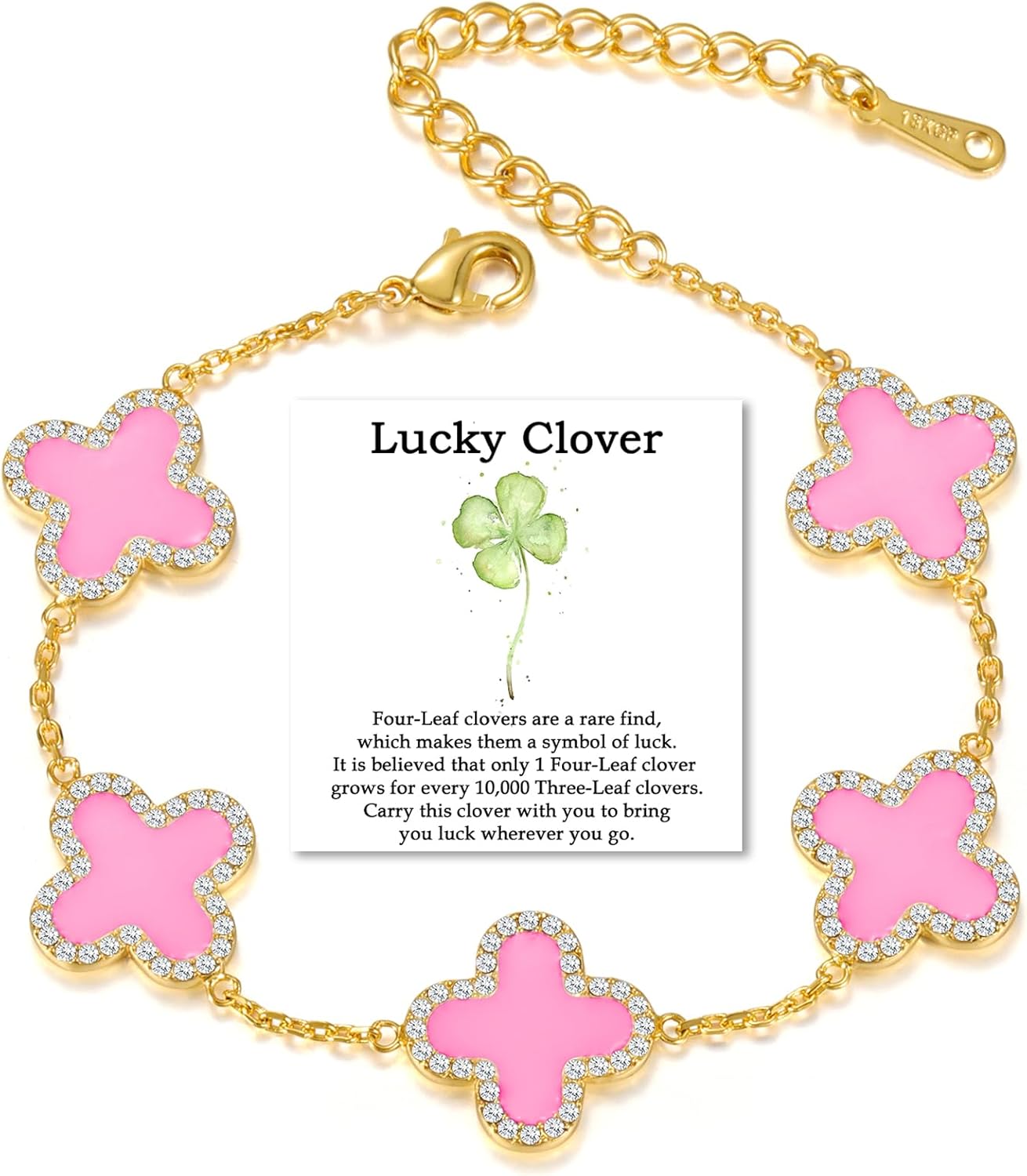Qitian Clover Bracelet for Women 18K Gold Four Leaf Pink Lucky Link Clover Bracelets, Trendy Bracelets Set Jewelry Gifts for Women