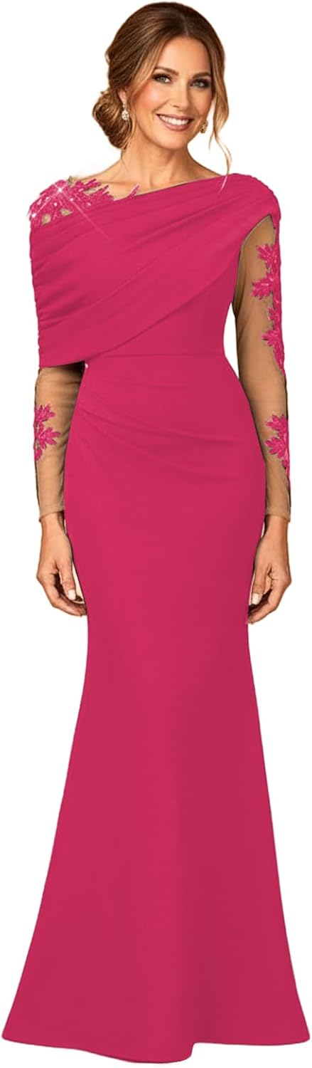 Elegant Mermaid Mother of The Bride Dresses Long with Laces Applique Asymmetric Ruffle Shoulder Formal Evening Dress