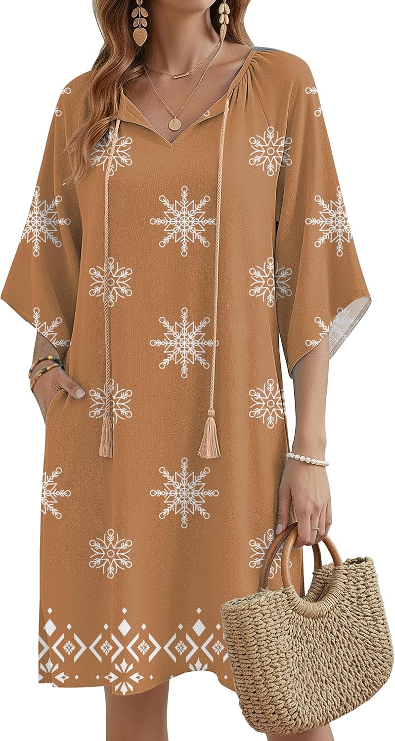 Zeagoo Womens Casual Summer Dress Boho Beach Dresses Tassel Tie Neck 2026 Floral Cover Up Spring 3/4 Sleeve Mini Sundress