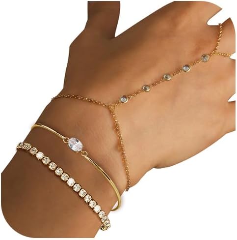 Hand Chain Bracelets Trendy CZ Finger Ring Chain Bracelet Gold Plated Slave Bracelets Stackable Hand Jewelry for Women
