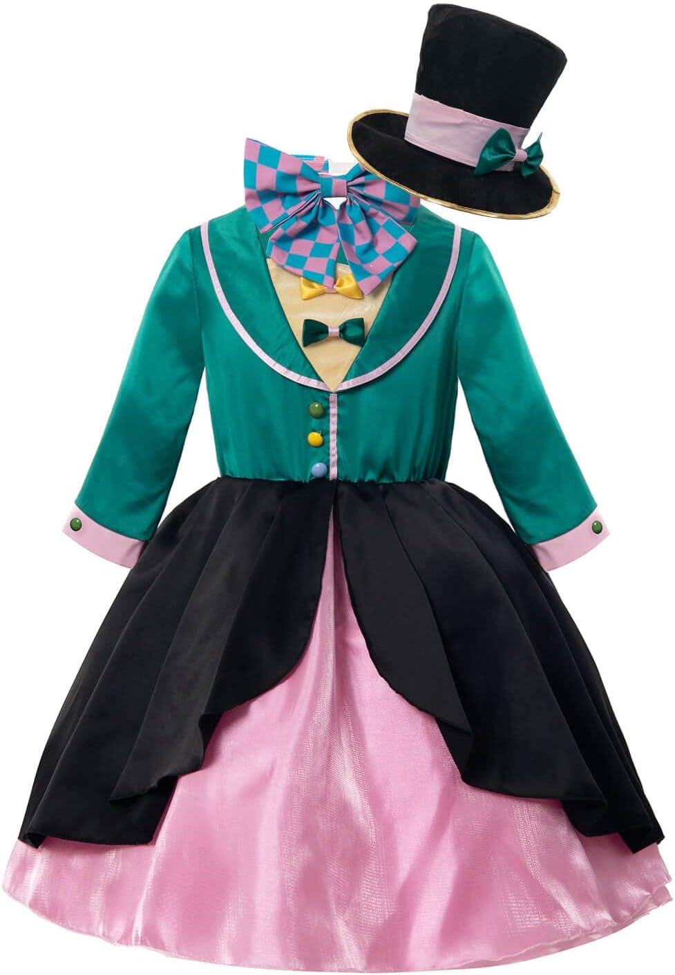 Nuoqi Girls Mad Hatter Costume Mad Hatter Tea Party Costume Halloween Dress with Hat