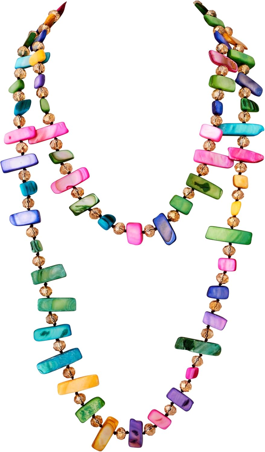 MINACHI Colorful Irregular Beaded Long Necklace, Coated Reflective Glass Beads, Bohemian Vintage Chunky Costume Jewelry for Women