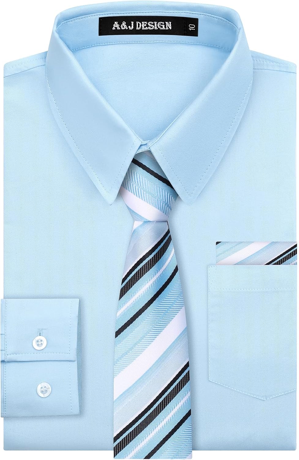 A&J DESIGN Boys Dress Shirt Kid Long Sleeve Formal Uniform School Oxford Button Up Shirt with Tie and Handkerchief