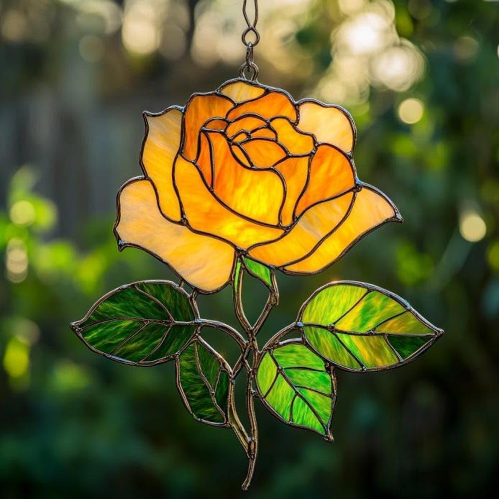 Rose Flower Acrylic Suncatcher Stained Glass Effect Window Car Hanging Christmas Ornament Indoor Outdoor Decor Garden Sun Catcher Panel Gifts for Flower Lover for Women Mom Grandma