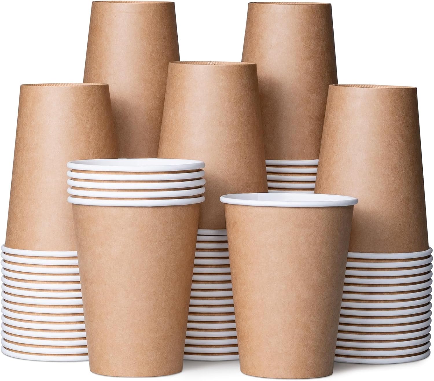 MATICAN Disposable Coffee Cups, 100-Pack 12-oz Bulk Paper Cups for Hot or Cold Drinks, Kraft Brown Cups for Office, Parties, and To-Go Use (No Lids)