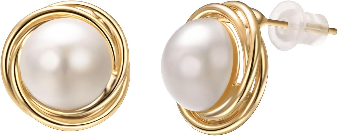 Aleasha Big Pearl Earrings for Women Faux White Pearl Silver925 Stud Earrings Classic Gold Earring Jewelry