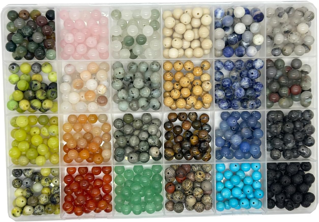 Maonewque 720pcs 6mm Natural Gemstone Beads Loose Gemstone Hole Size 1mm DIY Smooth Beads for Bracelet Necklace Earrings Jewelry Making,Box Packed (24 Materials-A)