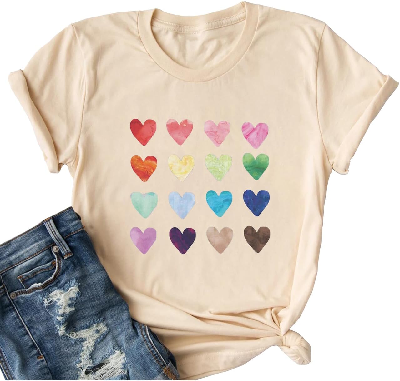 Ykomow Womens Valentine Shirts Leopard Valentine's T Shirt Plaid Love Heart Graphic Tees