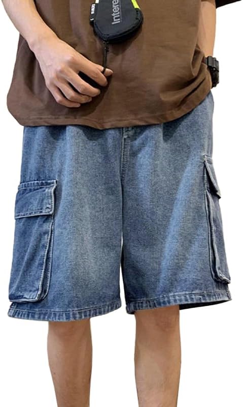 EMMIOL Baggy Jean Shorts Men, Y2k Jorts Cargo Ripped Elastic Waist, Mens Denim Shorts Comfy Casual Streetwear Summer