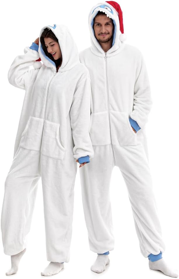 HSCTEK Fuzzy Teddy Fleece Adult Snow Monster Onesies Costume with Hoodie