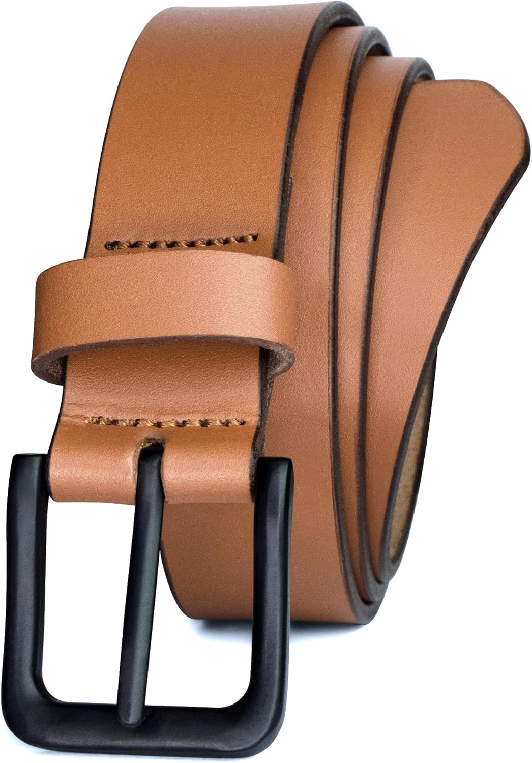 PBF Men’s Genuine Leather Belt 1.37" – Handmade Top-Grain Leather, Durable Casual & Formal Belt with Solid Metal Buckle