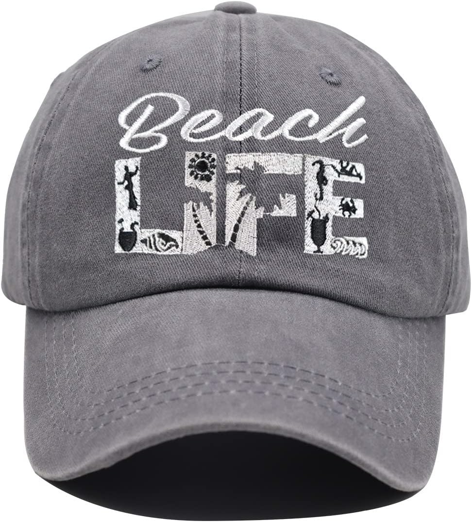 Beach Life Hat, Beach Hair Don't Care Baseball Cap Vintage Embroidered Adjustable Distressed Washed for Men Women