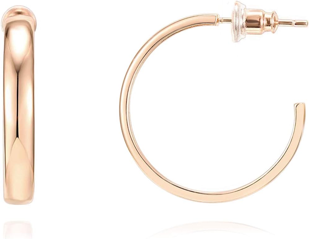 PAVOI 14K Gold Plated Wide Flat Edge Hoop Earrings for Women | Rose, White and Yellow Gold Hoops | Hypoallergenic Jewelry