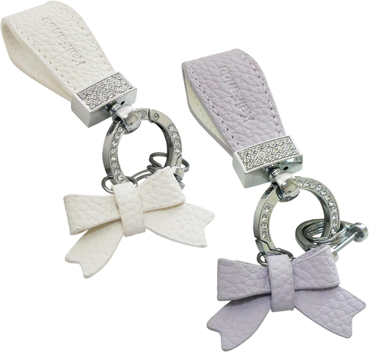 2P Women's Cute Bow Leather Keychain with Rhinestone - Shiny Wristband Personalized Gift (White and Purple)