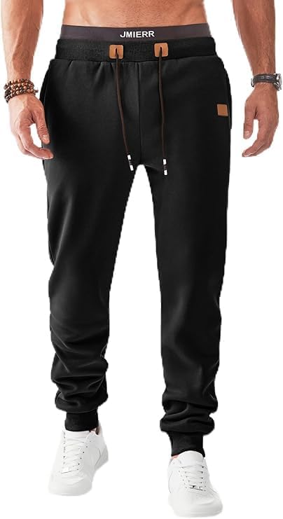 JMIERR Men's Fleece & Regular Sweatpants with Zipper Pockets Tapered Joggers Drawstring Waist Athletic Workout Track Pants
