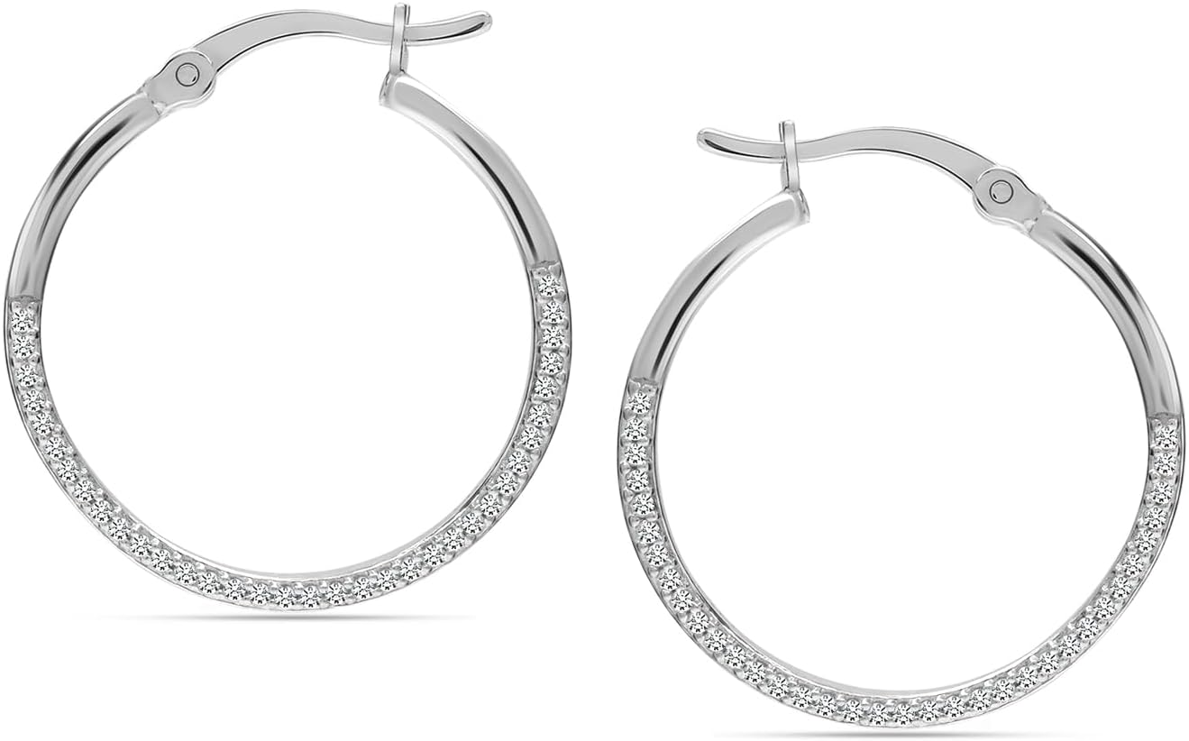 LeCalla ALL Made of Real 925 Sterling Silver Hoop Earrings Lightweight Round Cubic Zirconia Hoops Earring for Women 30MM
