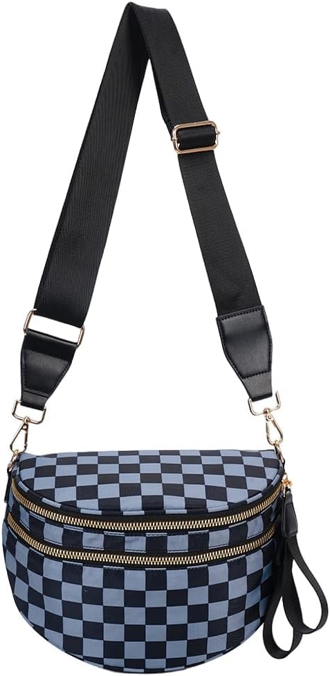 Lushandy Bum Bag Women's Checkered Crossbody Bag Nylon Cross Body Bags Plaid Mom Everyday Purse for Travel