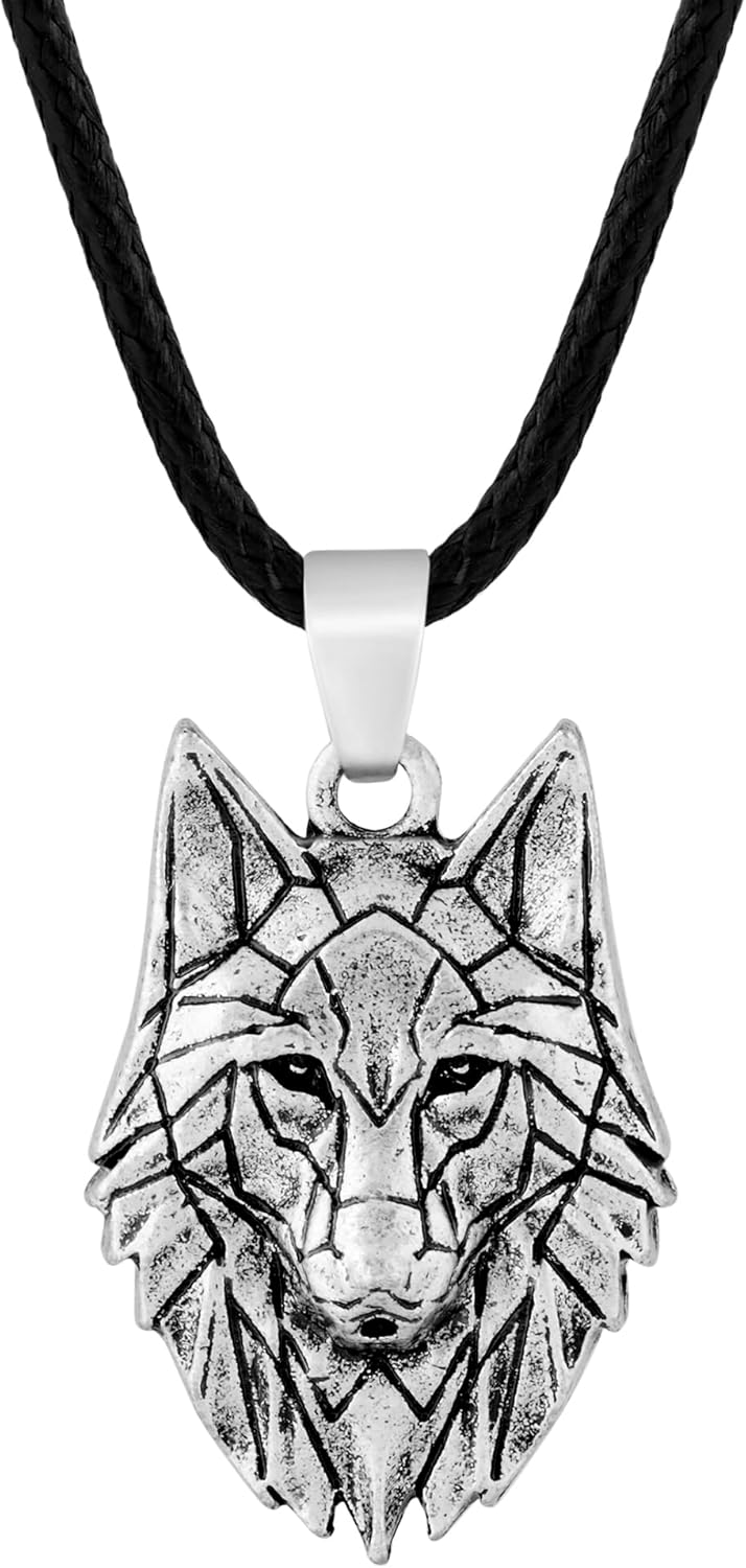 HAQUIL Wolf Necklace, Tribal Wolf Head Pendant, Animal Totem Jewelry Gift for Men and Women