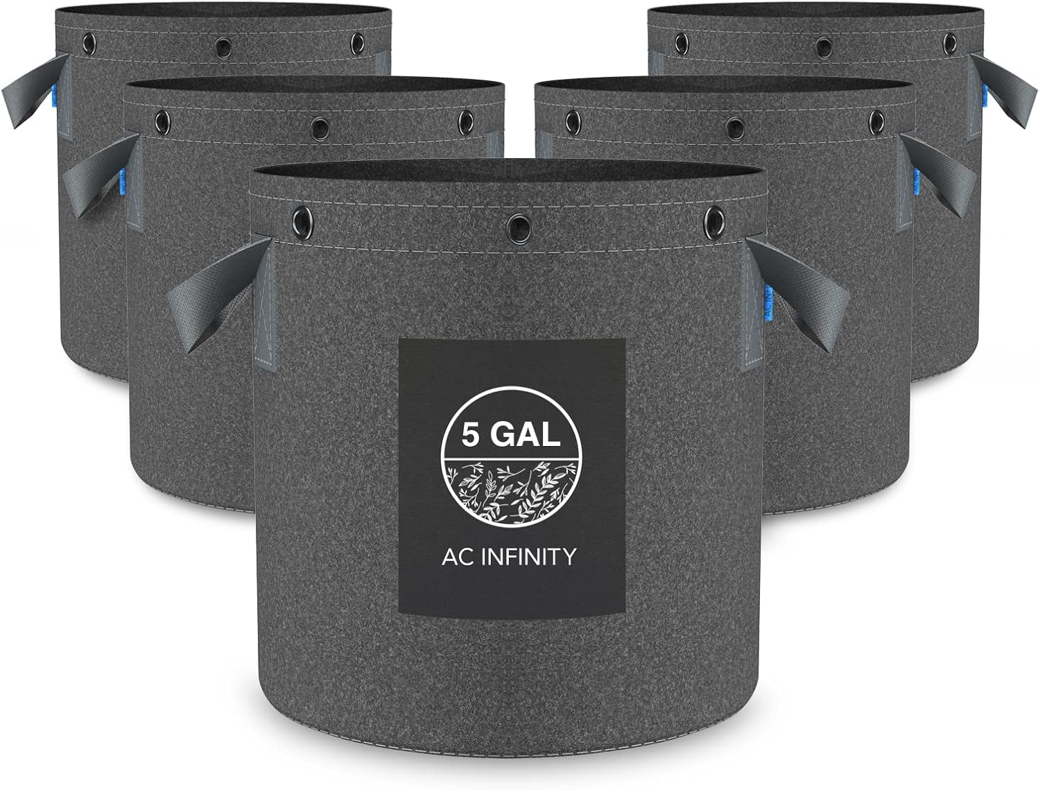 AC Infinity Heavy Duty Fabric Pots, 5 Gallon Aeration Reusable Grow Bags 5-Pack with 500G Thick Nonwoven Fabric and Multi-Purpose Rings, for Low Stress Plant Training Fruits, Vegetables, and Flowers