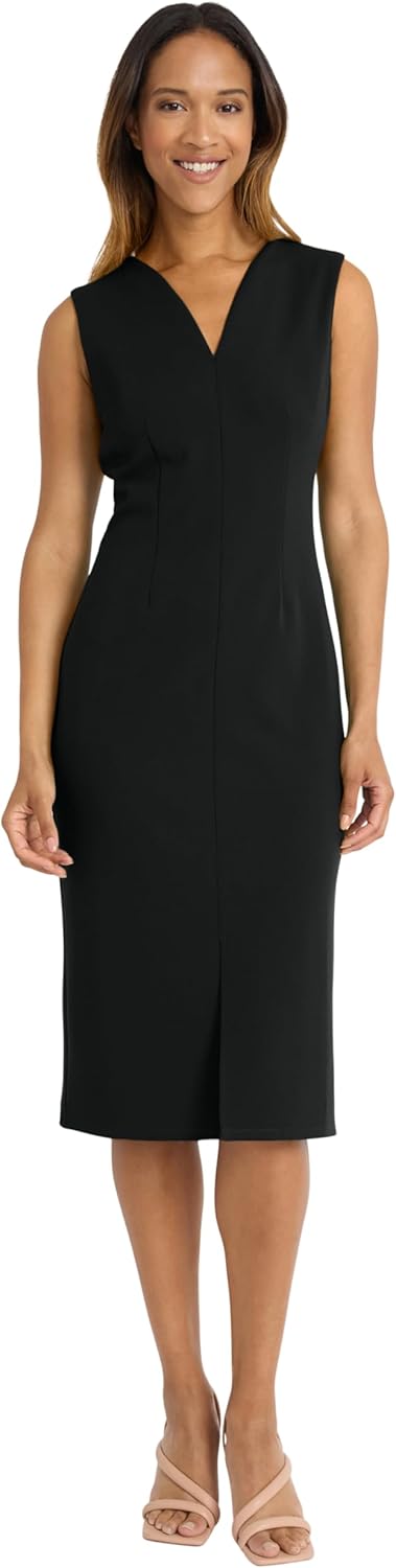 Donna Morgan Womens Women's Sleeveless V-Neck Midi Sheath Dress with Front Slit