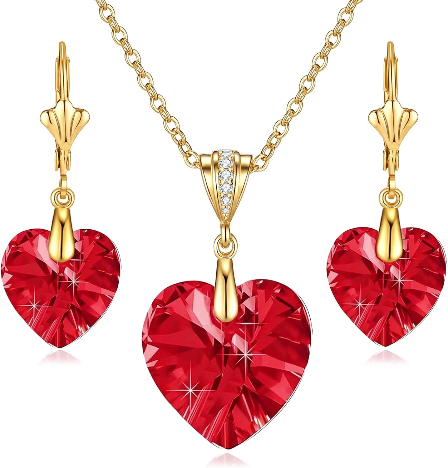EVEVIC Austrian Crystals Heart Pendant Necklace Earrings for Women 14K Gold Plated Hypoallergenic Leverback Drop Dangle Earring Jewelry Set