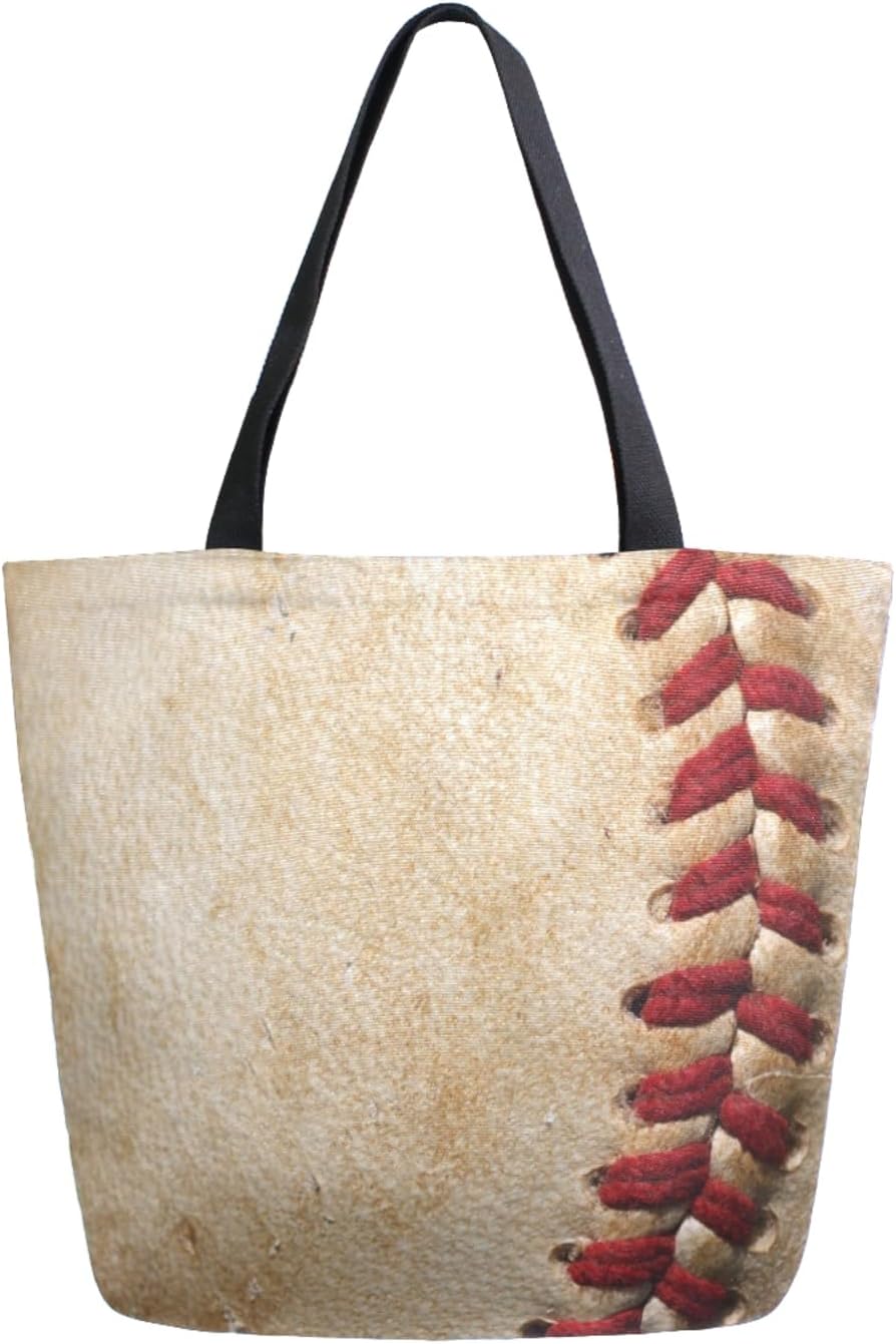 ALAZA Retro Baseball Threads Canvas Tote Bag Large Women Casual Shoulder Bag Handbag,Shopping Grocery Cotton Bag Reusable,Multipurpose,Heavy Duty For Outdoors Weekender Travel