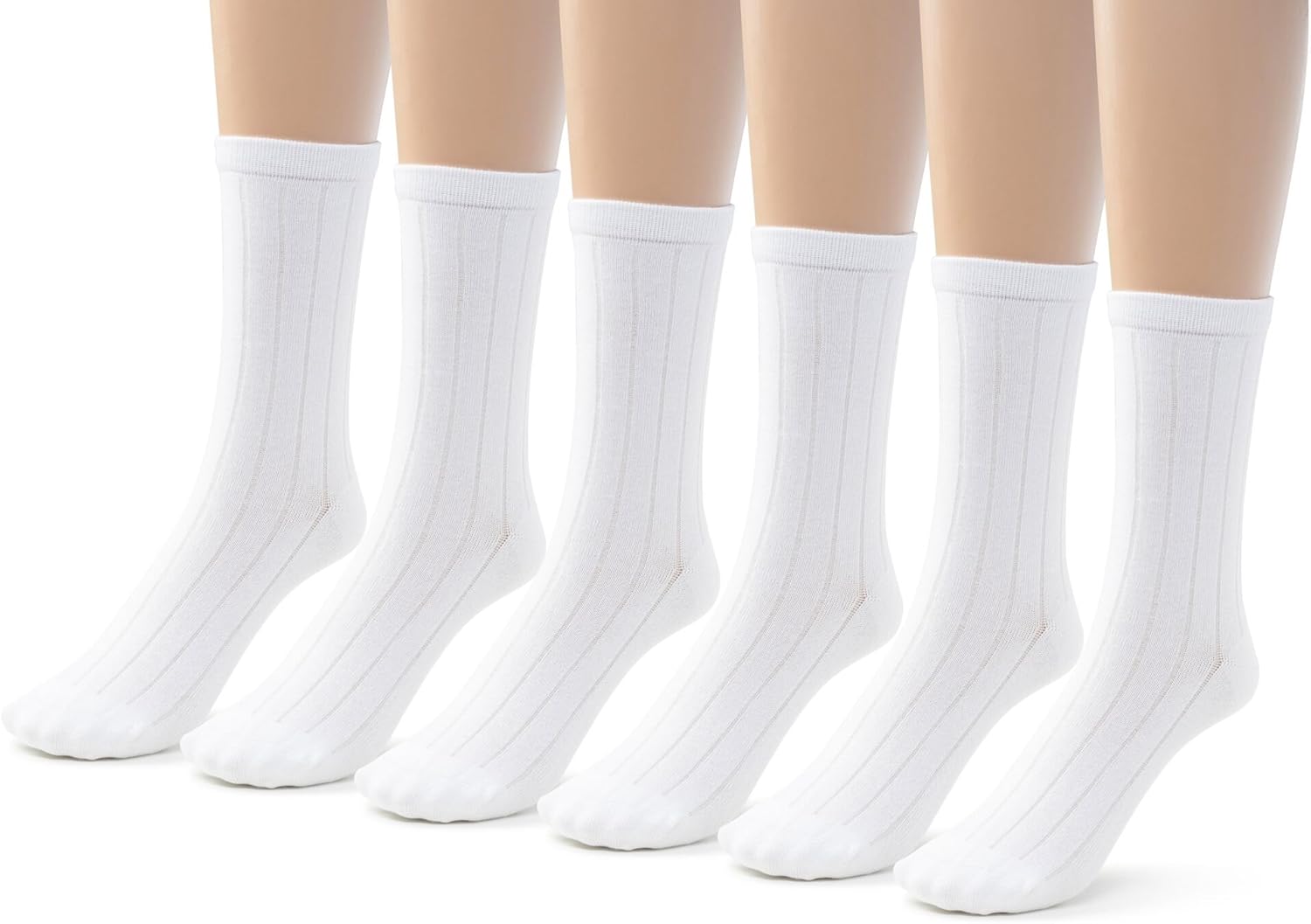 Silky Toes Mens Rayon From Bamboo Ribbed Dress Crew Socks 3 or 6 Pairs Calf Socks