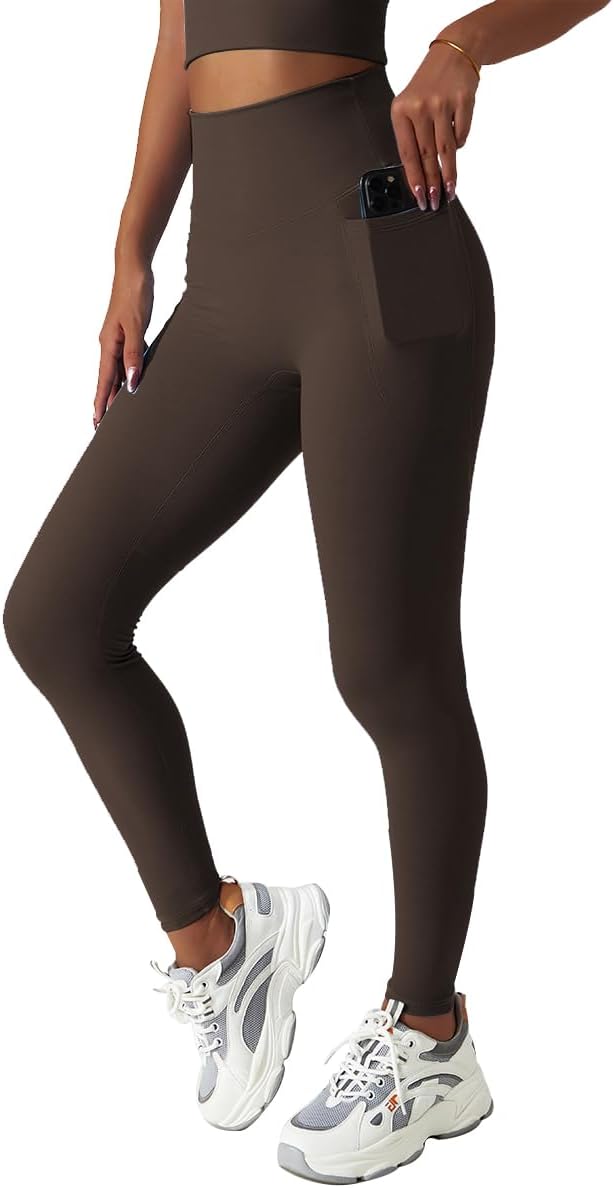 Workout Leggings for Women Yoga Pants with Pockets High Waisted Athletic Tights SilkyGym Activewear Lounge Brown