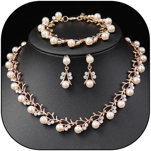 Rrdaily Rhinestone Pearl Wedding Jewelry Set for Bride Bridesmaid Bohemia Adjustable Beaded Crystal Bracelet Necklace Exaggerated Pearl Earring Set for Women
