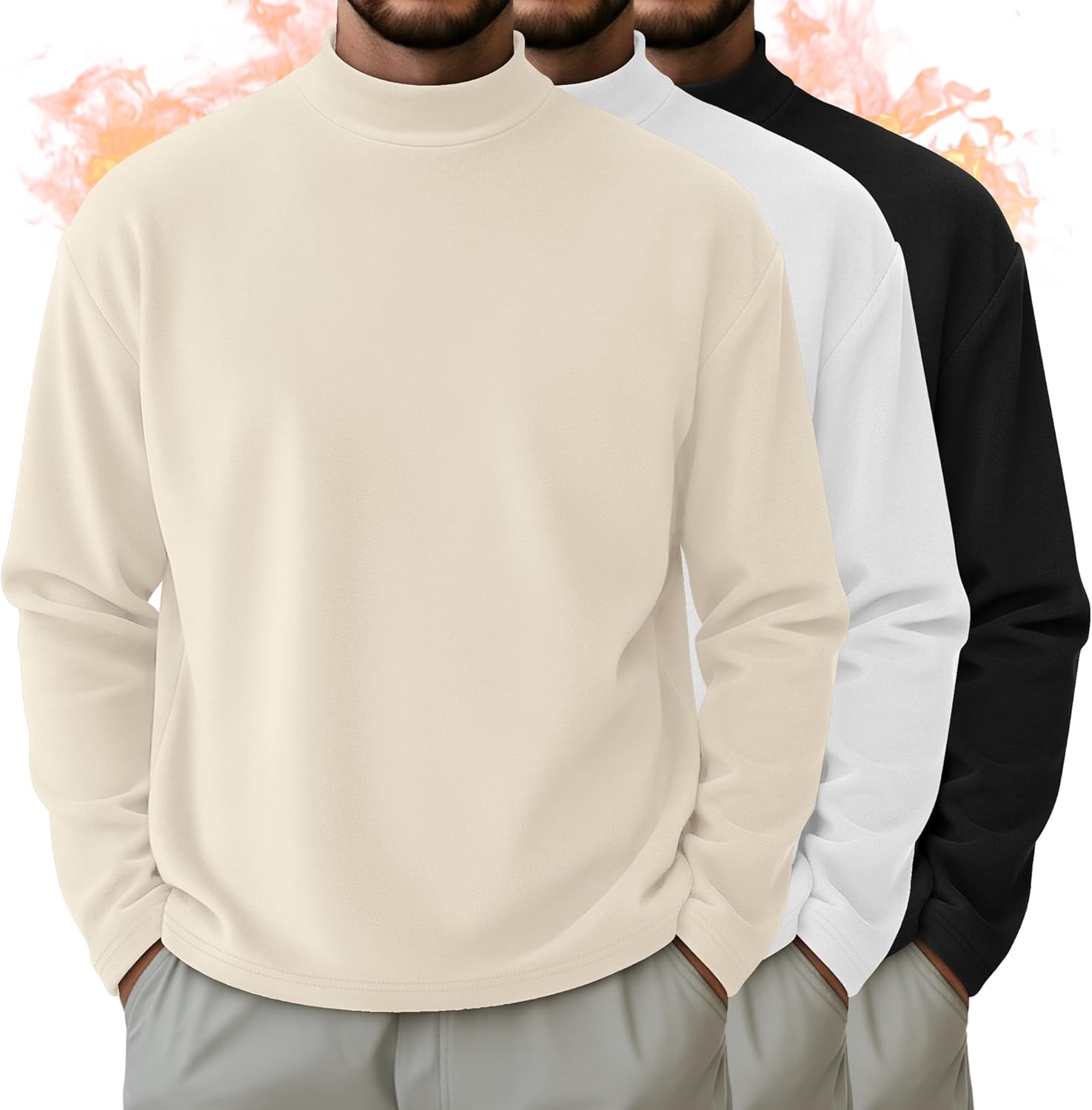 3 Pack Men's Mock Turtleneck Shirts Thermal Long Sleeve Tops Basic Mock Neck Slim Undershirts Pullover Sweaters