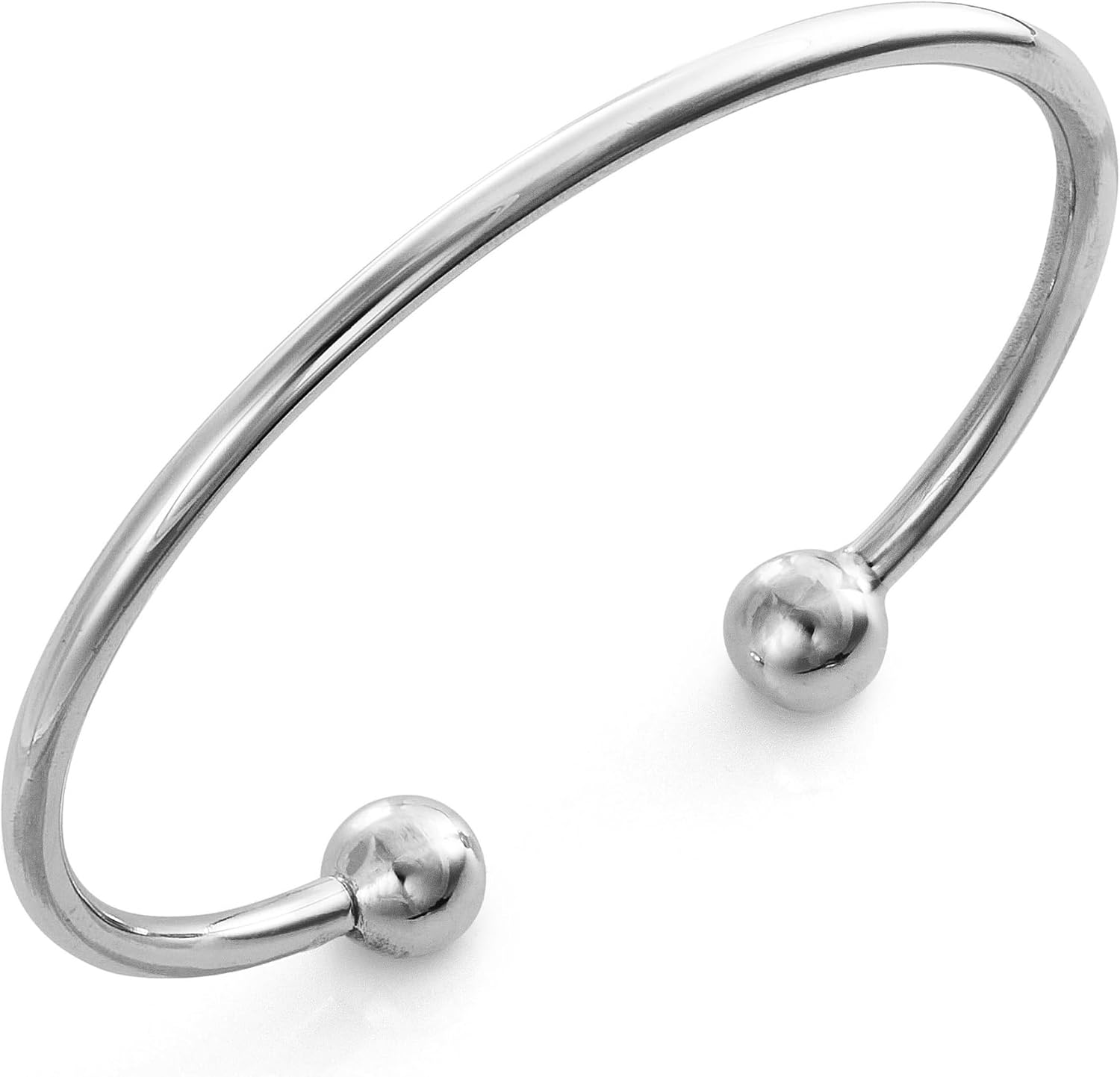 925 Sterling Silver Torque Bangle for Women, Hollow Cuff Bracelet with Ball Ends, 3mm Wide, Classic Minimalist Design