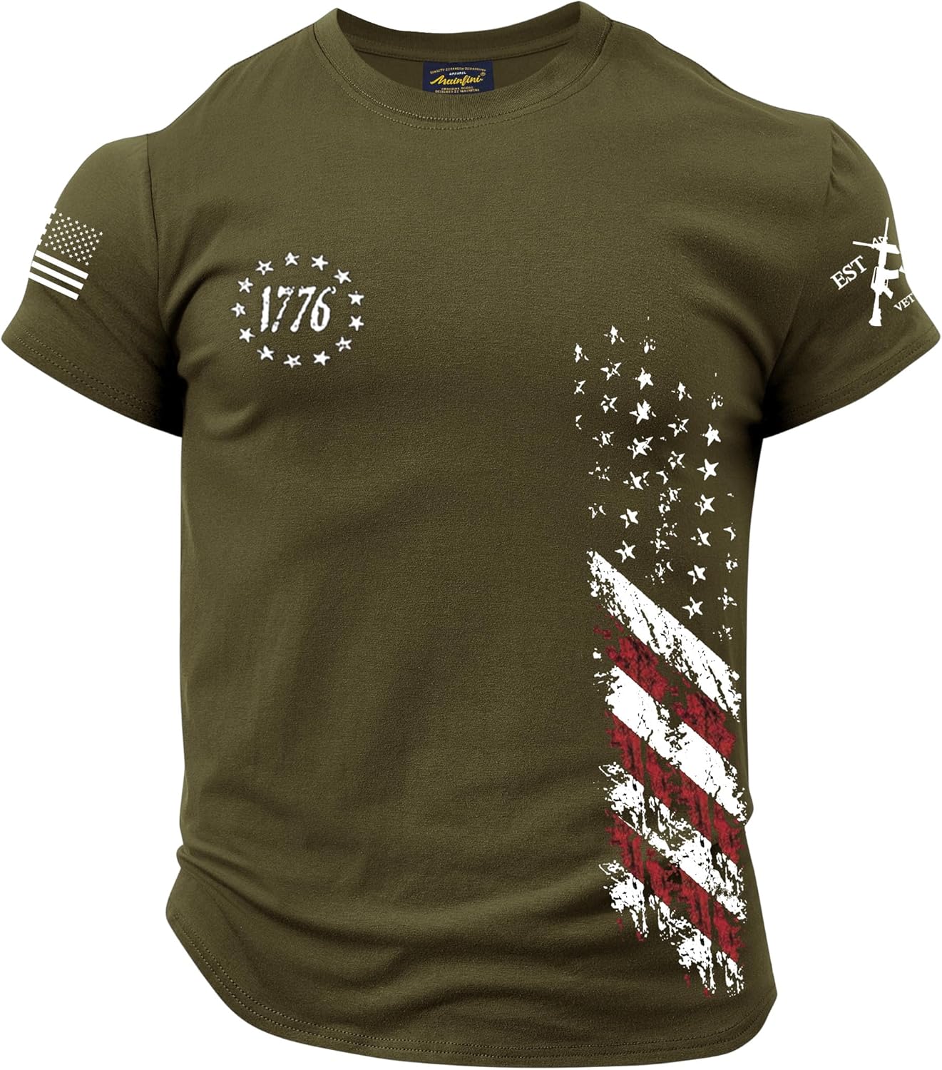 Mainfini Men's Patriotic Shirts Distressed American Flag 1776 Workout Gym Muscle T-Shirts (S-3XL)