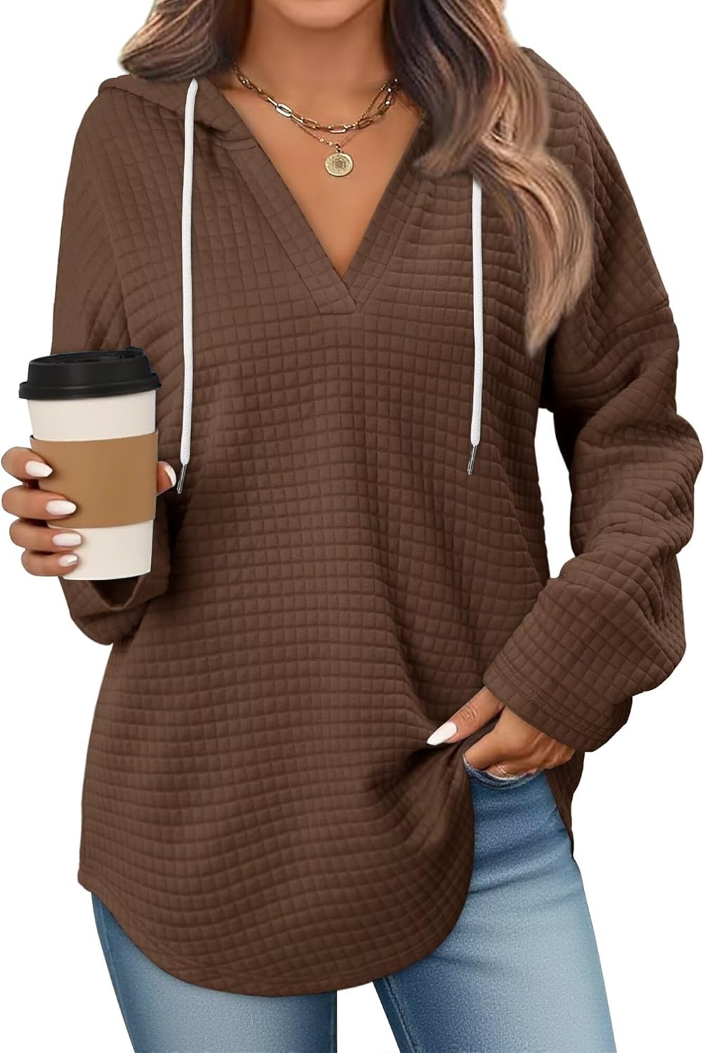 ONLYSHE Womens Hoodie Sweatshirt Lightweight Cozy Waffle Knit Pullover Top with Kangaroo Pockets