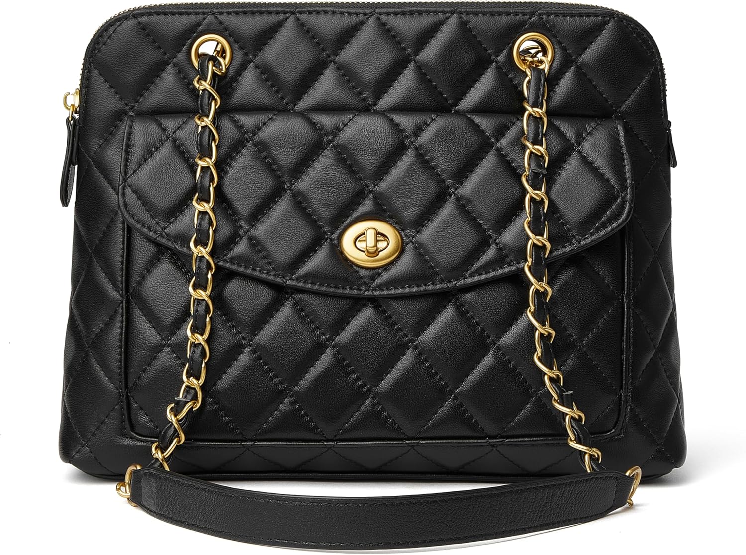 Doris&Jacky Quilted Leather Satchel Shoulder Purse for Women, Designer Long Chain Strap Tote Bag and Soft Lambskin Handbags
