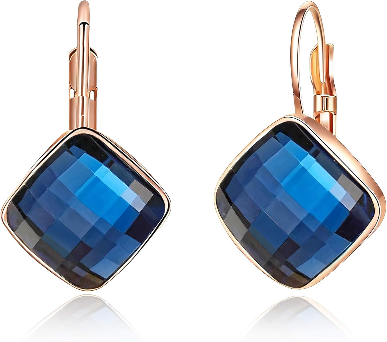 EVEVIC Austrian Crystal Square Dangle Drop Leverback Earrings for Women Fashion 14K Gold Plated Jewelry Gifts for Anniversary