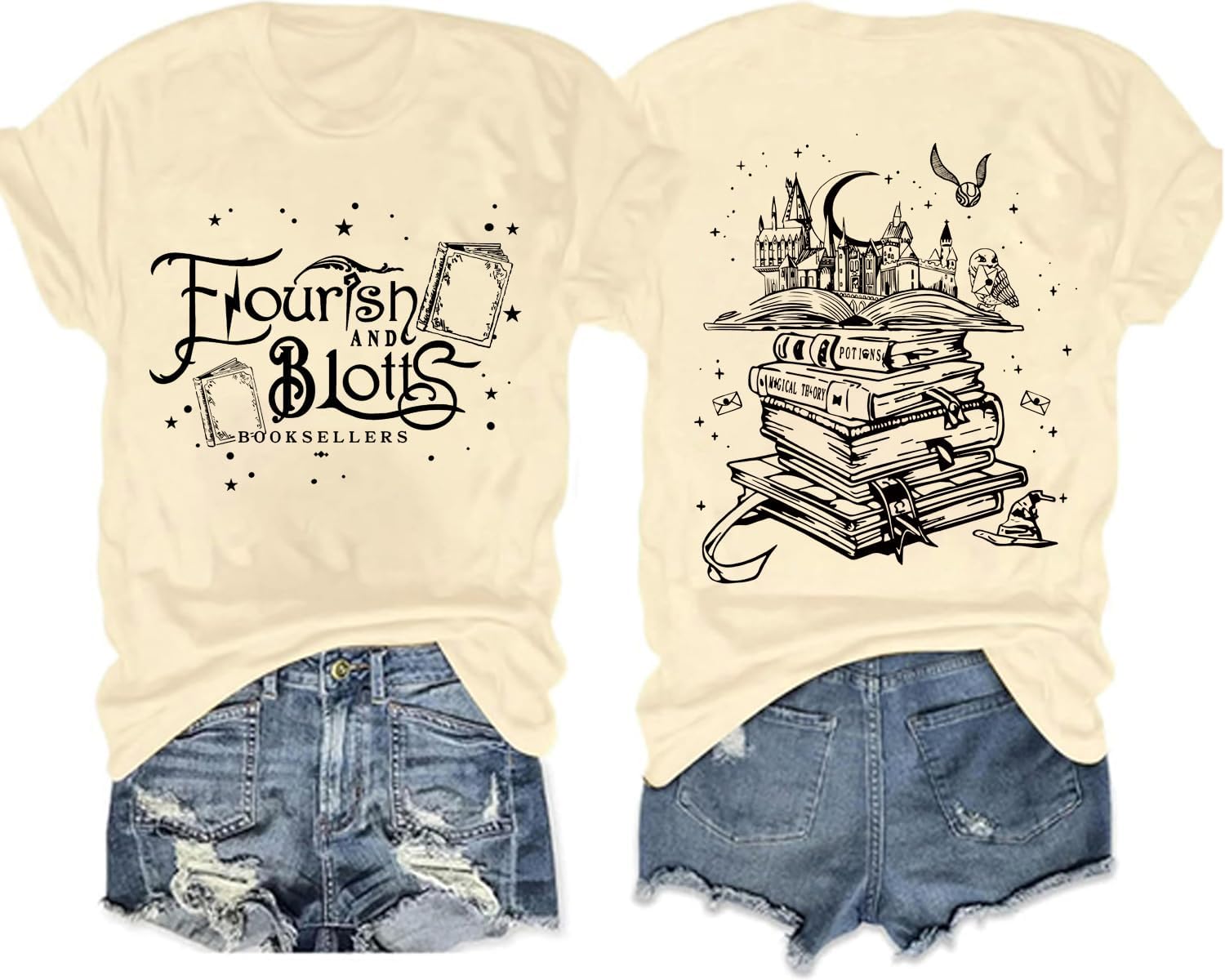 Magical Shirts for Women Book Magic Graphic T-Shirts Flourish and Blotts Shirts Wizard Tees Vacation Tops Costume Clothes